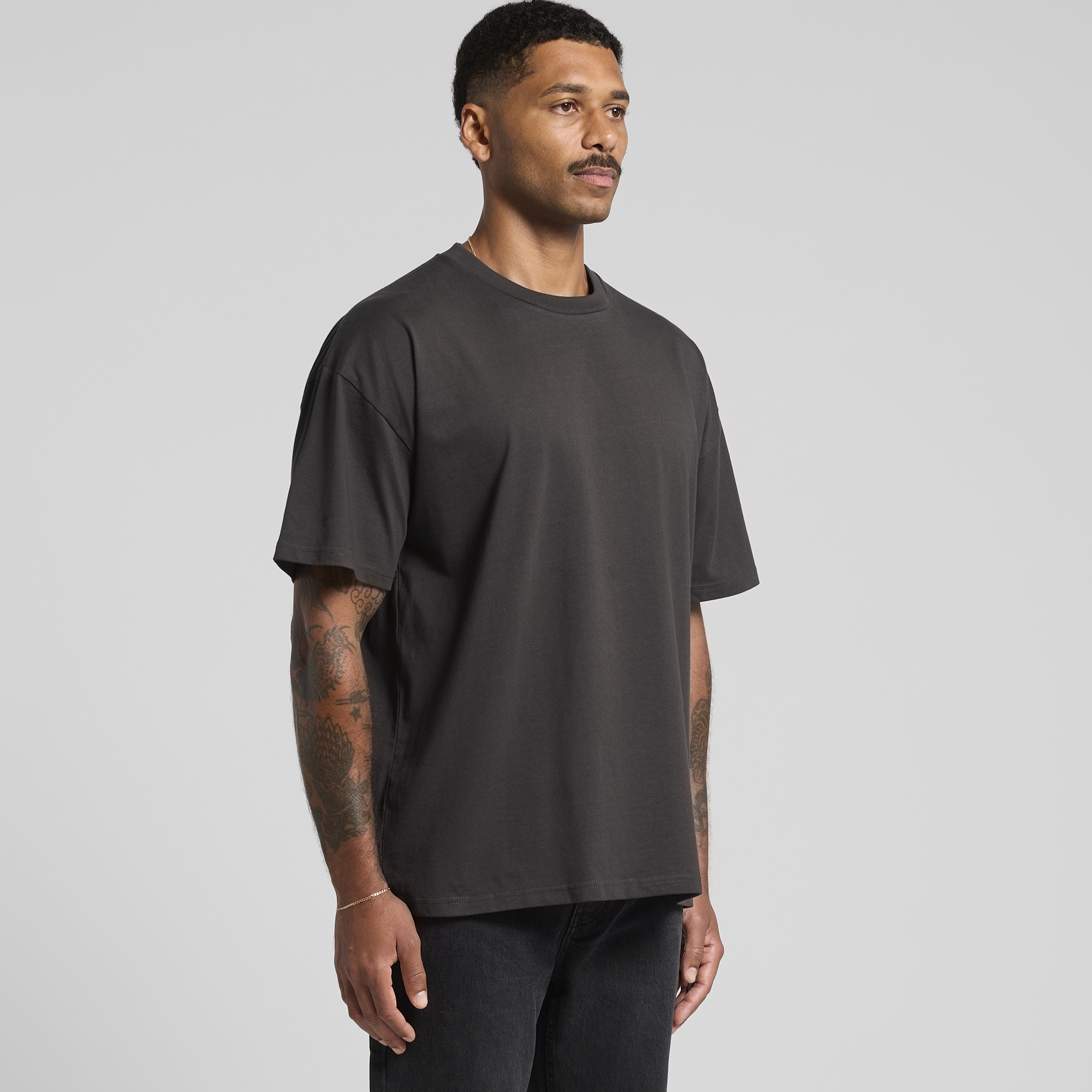 A new iteration of the AS Colour Classic Tee – The Classic Oversized Tee. With a slightly shorter length, extra width and dropped shoulders for a boxy silhouette. The perfect blank for printing with its smooth finish and heavy weight 220 GSM, 22-singles 100% combed cotton. Built to last with neck ribbing, side seams, shoulder-to-shoulder tape, and double needle hems, plus preshrunk fabric for minimal shrinkage. Great for adding your own design with Print Poppa.